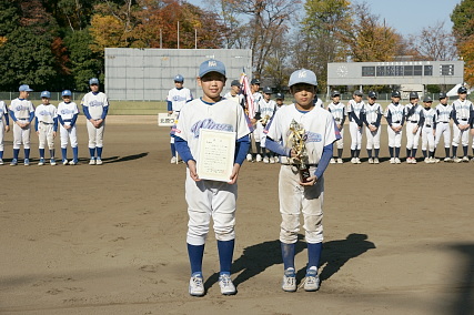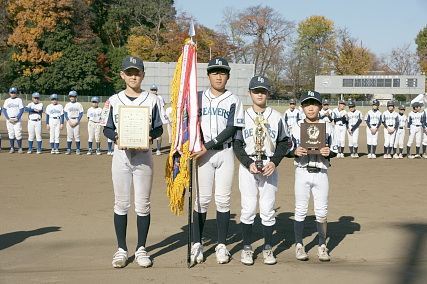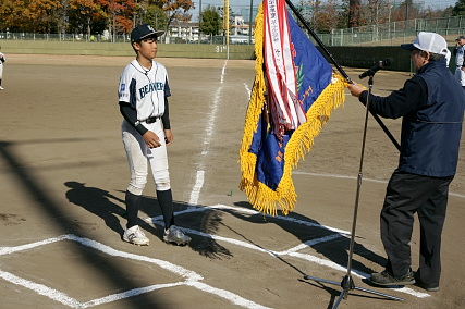 優勝旗が栗原ビーバーズに 手渡されました。 |